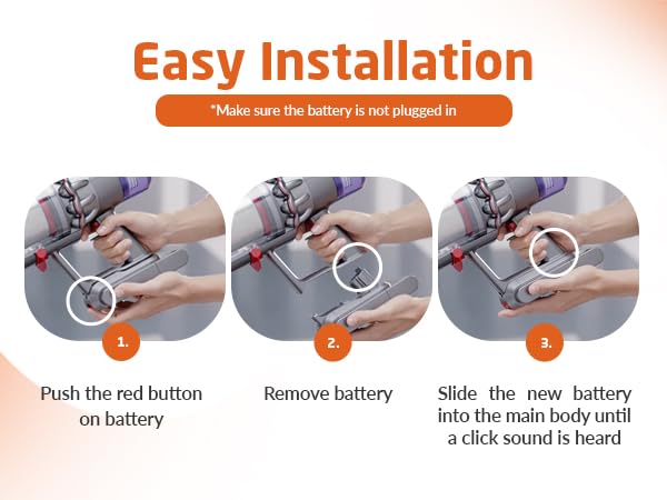• Caution: Please check your vacuum model before ordering. If your vacuum has a screw installation battery, this battery does not fit your machine.