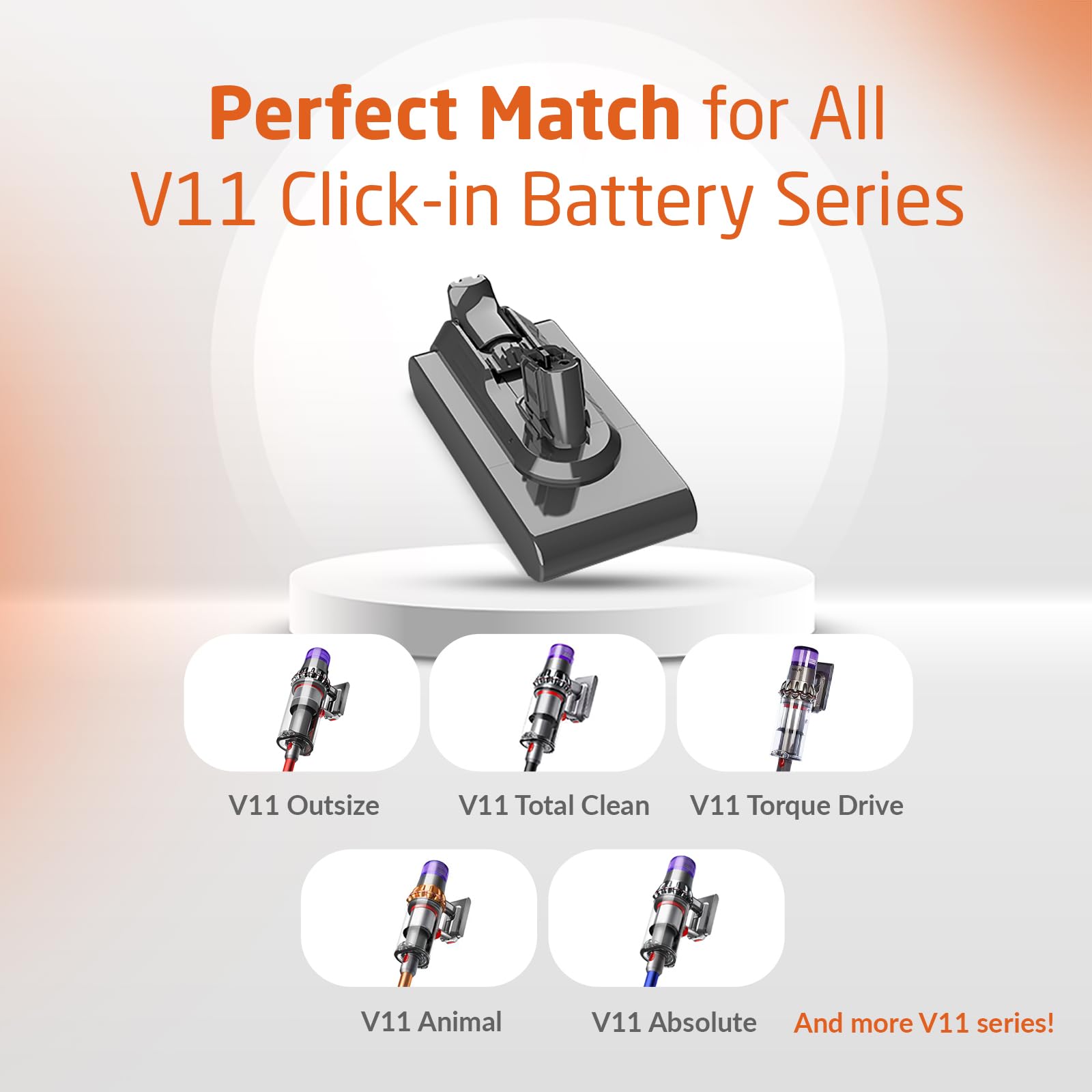 • Compatible with OEM accessories: Fully compatible with V11 (Red click-in battery) vacuums and all V15 vacuums. SV15, SV22, SV47, V11 Animal, V11/V15 Click-in battery vaccums, V11 Outsize, V11 Extra, V11 Absolute Series, V15 Detect, V15 Detects Submarine. If you need guidance selecting the correct battery, please contact customer support or refer to the guide below.