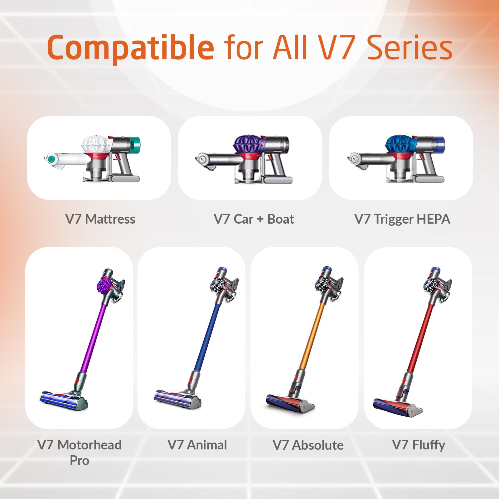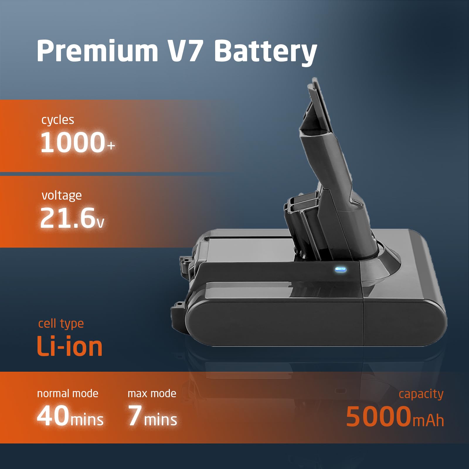 • Compatible With All V7 Models: Can be charged with the original V7 charger. Compatible with Dyson V7 Motorhead, V7 Fluffy, V7 Animal Pro, V7 Trigger, V7 Car+boat, V7 Absolute. Part No. 968670-06.