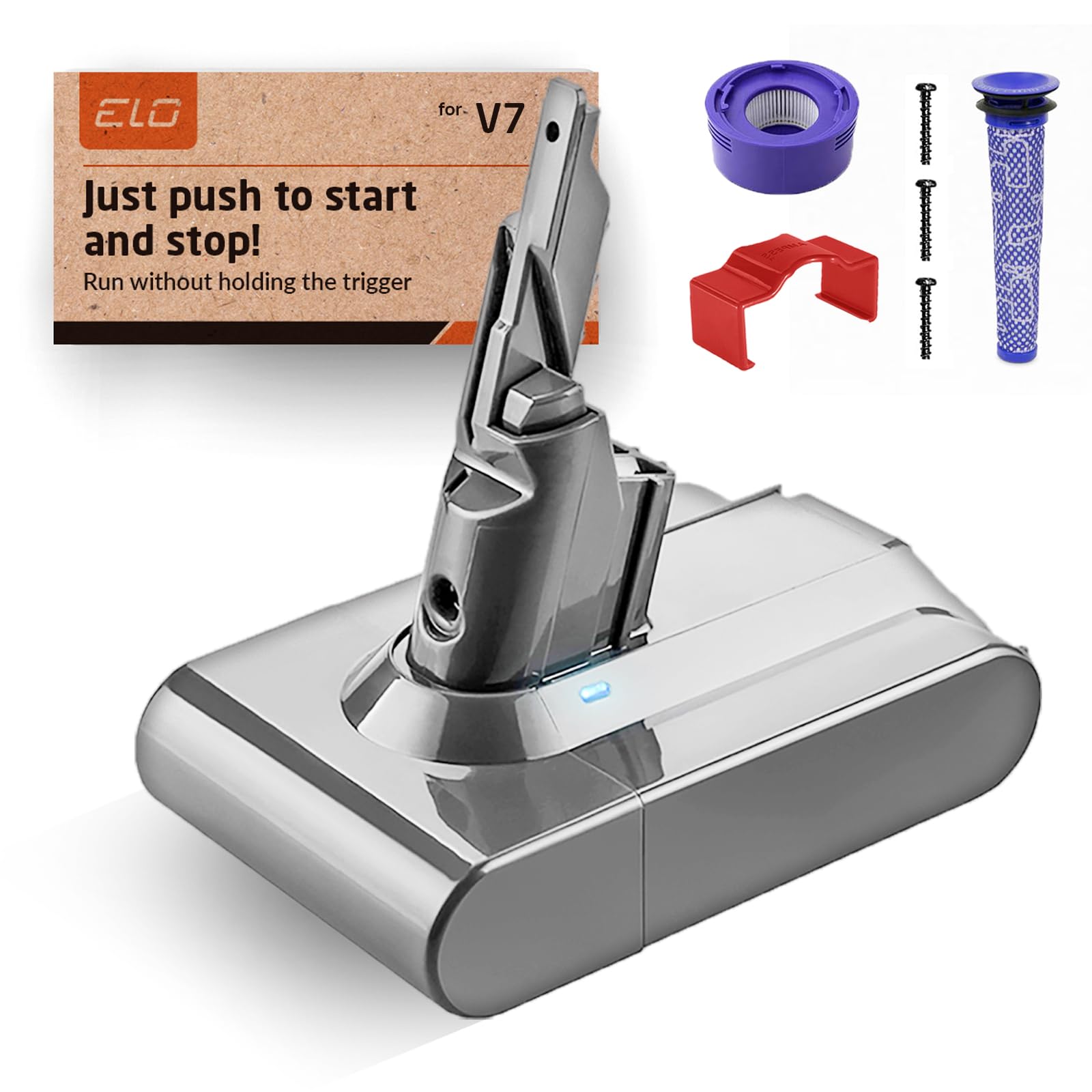 ELO V7 Battery Replacement with Built in Trigger Lock Compatible with Dyson SV11 V7 Motorhead V7 Animal V7 Trigger V7 HEPA V7 Car+Boat V7 Absolute Handheld Vacuum Cleaners 2 Filters Included