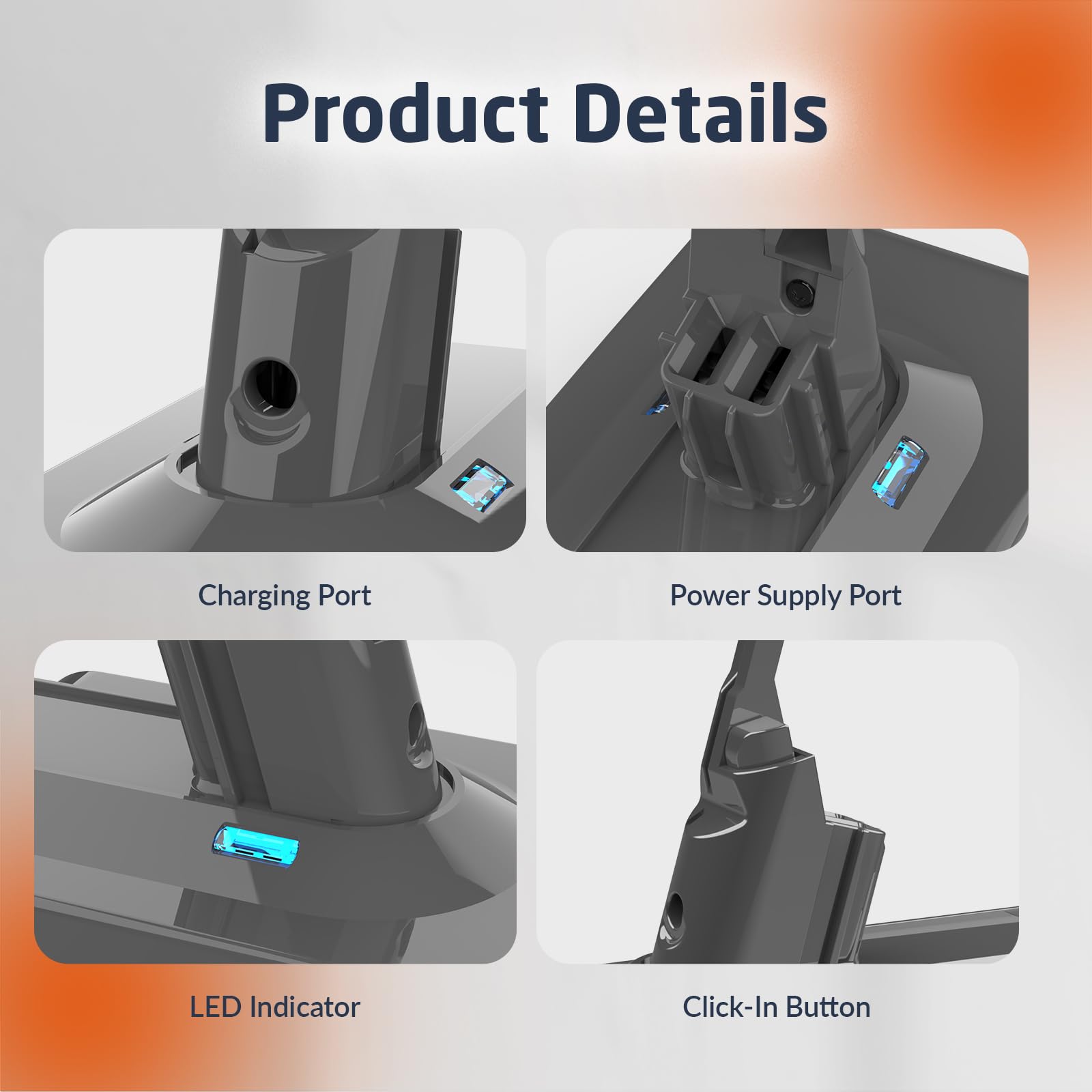 • Premium Battery: This 21.6V, 5000mAh lithium-ion battery provides superior performance and longevity, offering up to 55 minutes of runtime for your V8/SV10 vacuum.